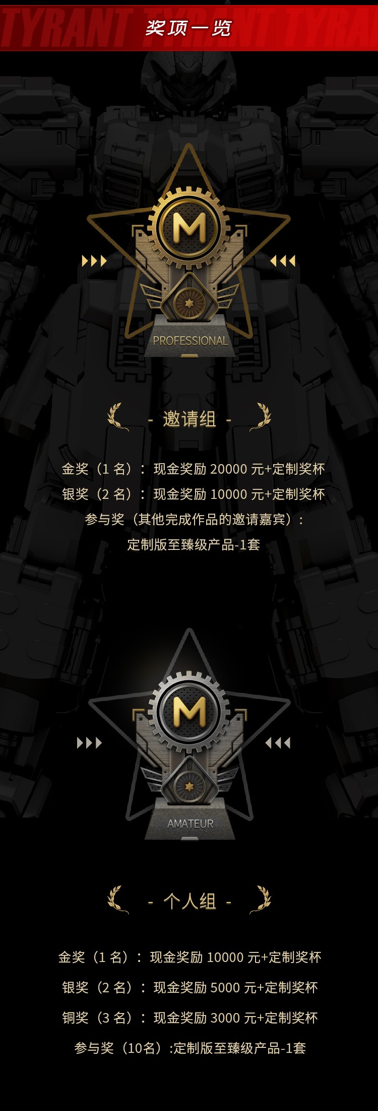 在这里,你可以充分发挥想象,对【卓越级·暴君】模型进行任意的涂装和外观改造,赋予其全新生命!优秀作品将有机会实体化,现在是时候全力出击了!